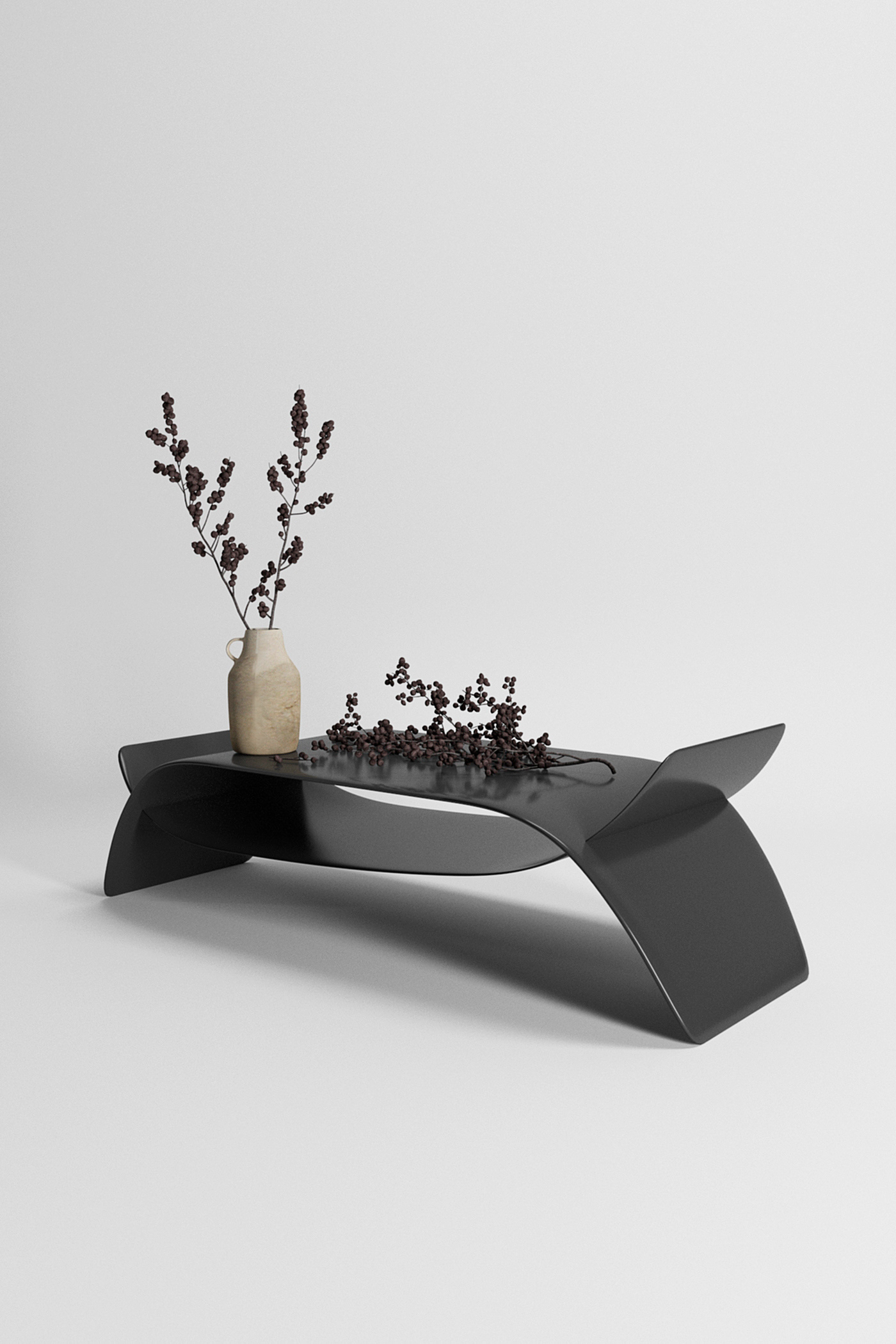 The series of tables consists of three modifications, where the shape is the same, but the material is different. Each of them is different, though so similar to each other. The idea was to combine two planes, as if they intertwine and emerge from each other. The lower element emphasises the figure and serves as a functional shelf. The one made of wood looks like little crabs.The other made of metal reminds the Chinese hieroglyph were one symbol can explain all essence. Simple, but so clear. These tables will be perfect addition to your interior. Consept for studio Sergey Makhno Architects